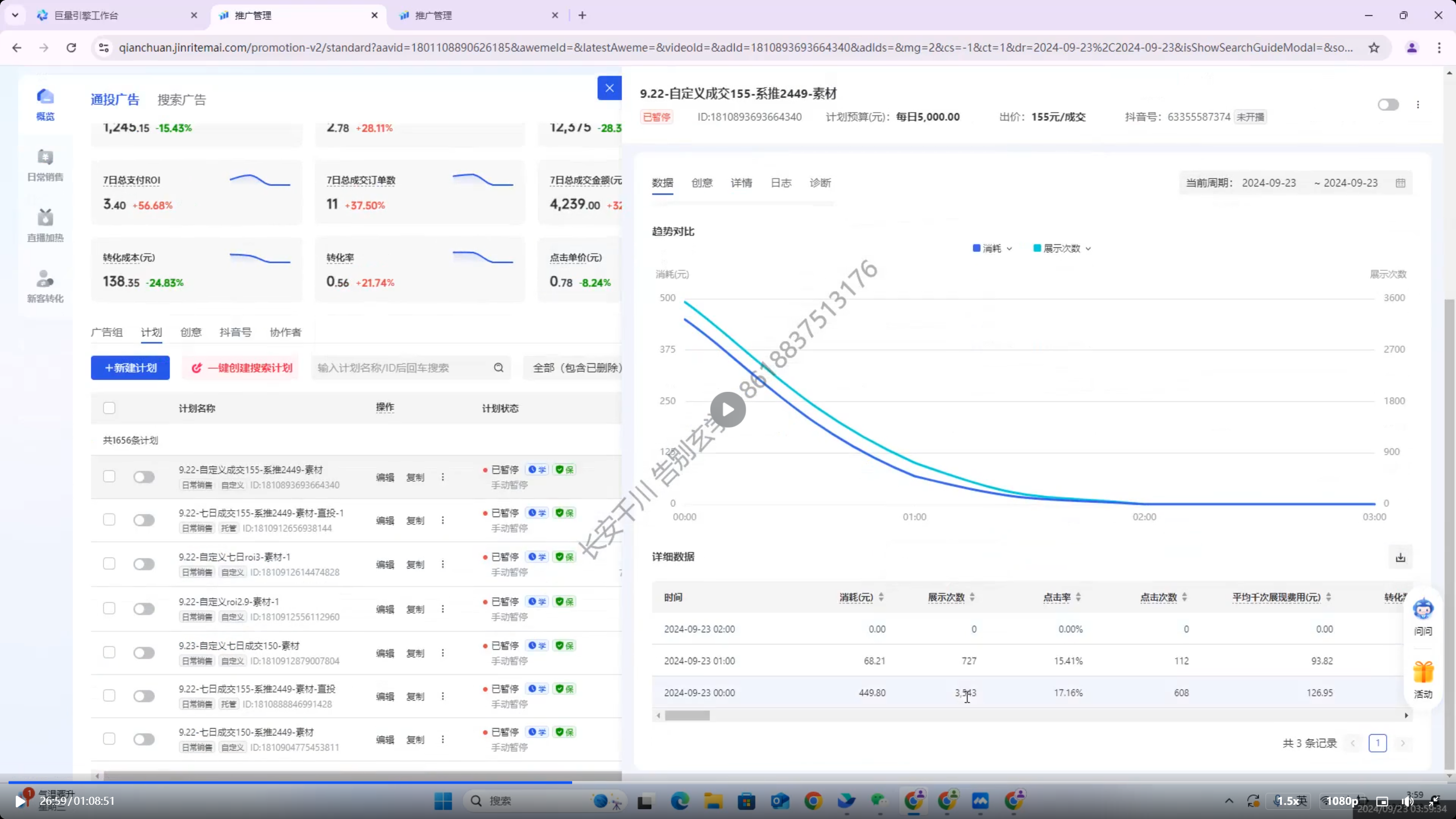 全域推广,无论推直播间或推商品,都只能建一条计划,其直播大屏在计划详情页内查看