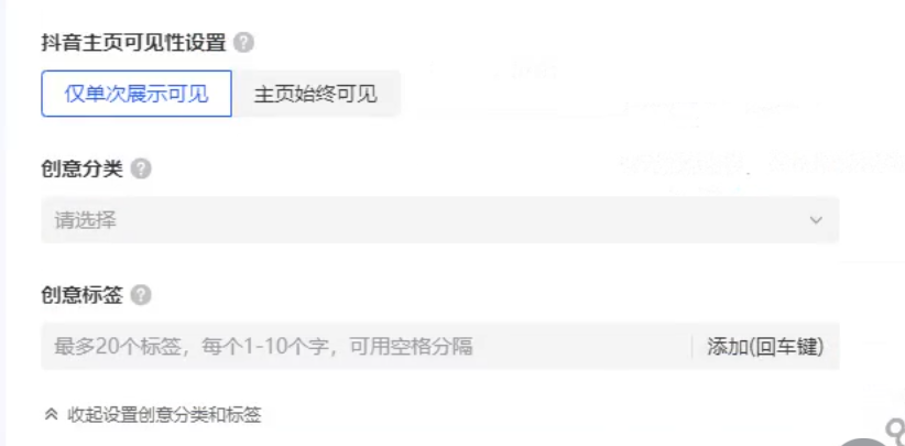 抖音主页可见性设置,一般选 仅单次展示可见 (跑本地的素材不想发到账号主页),选择 主页始终可见 会上传到账号主页中