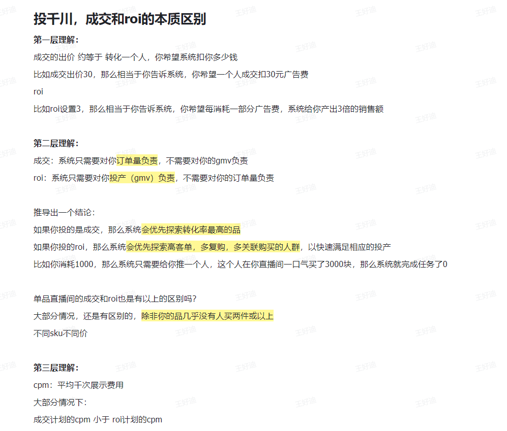 投干川,成交和 roi 的本质区别