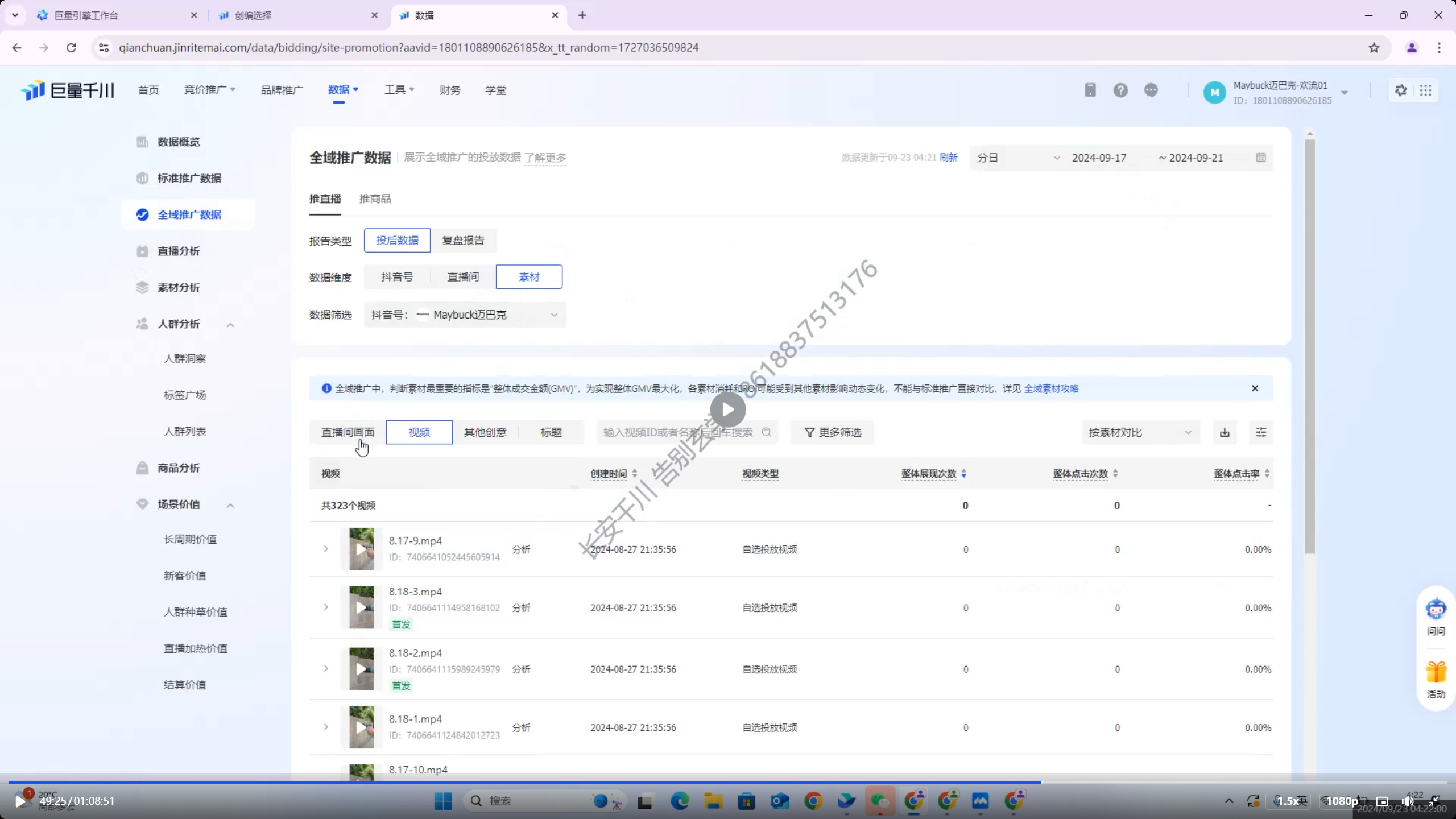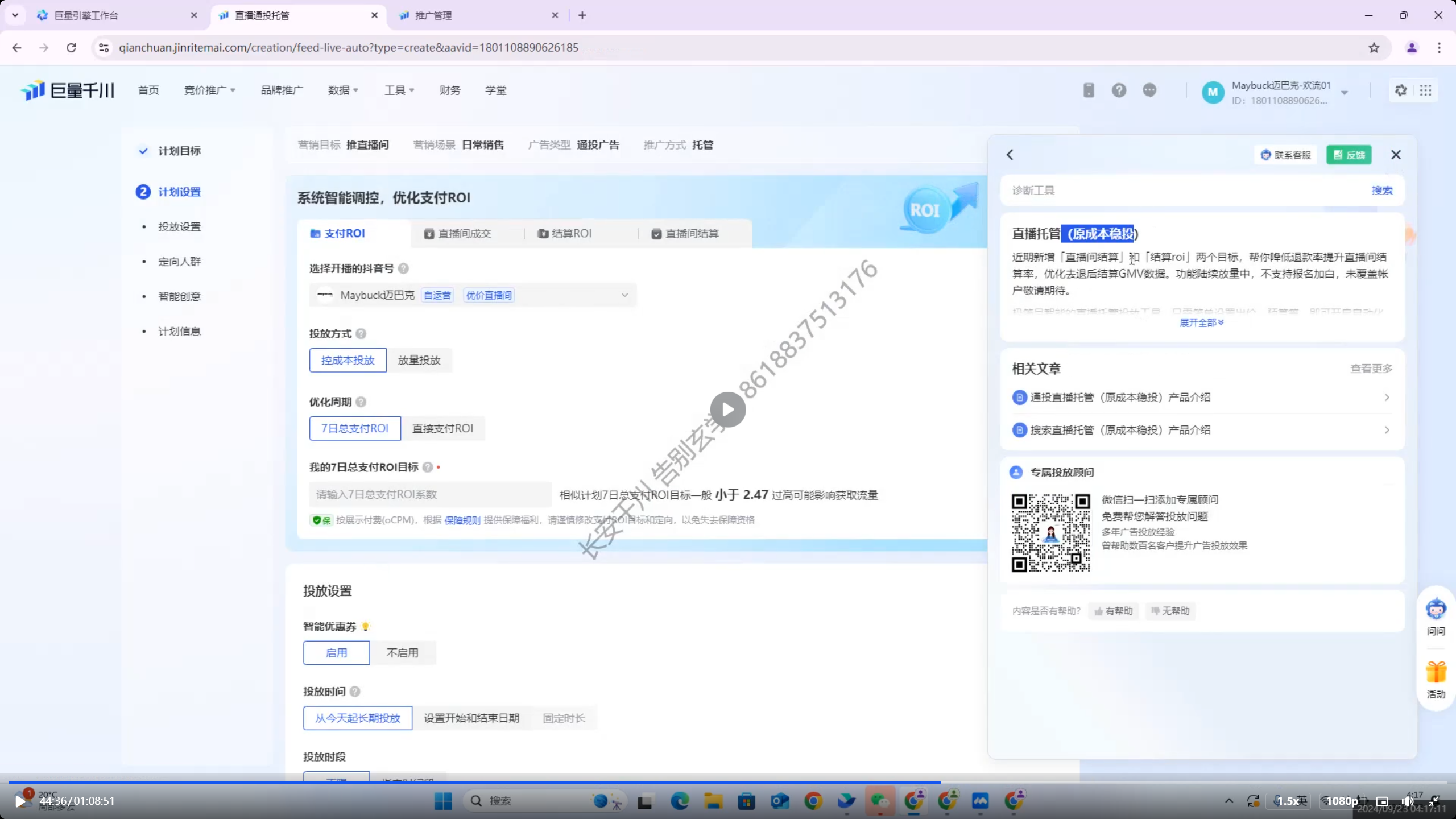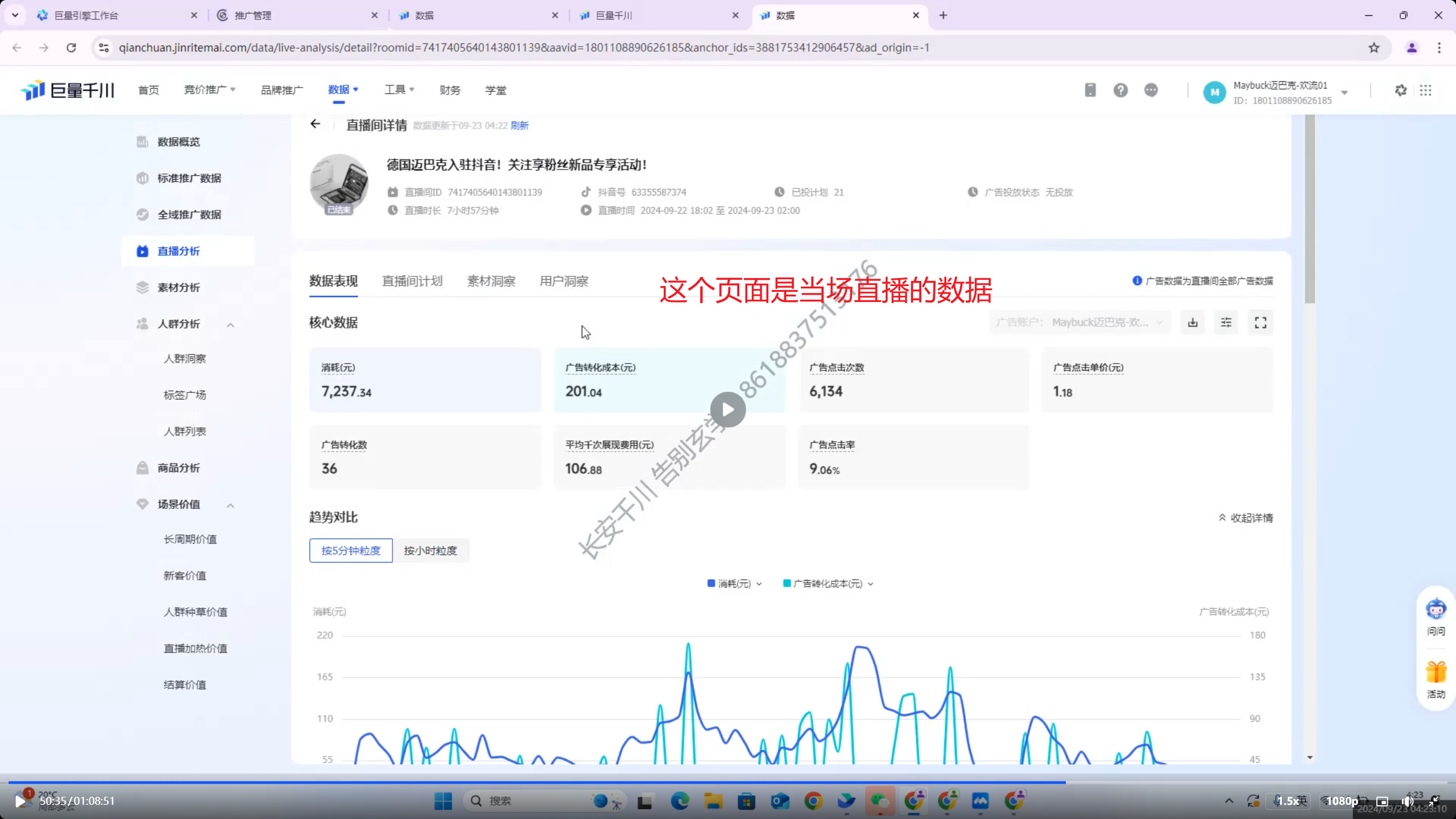 全域推广,无论推直播间或推商品,都只能建一条计划,其直播大屏在计划详情页内查看