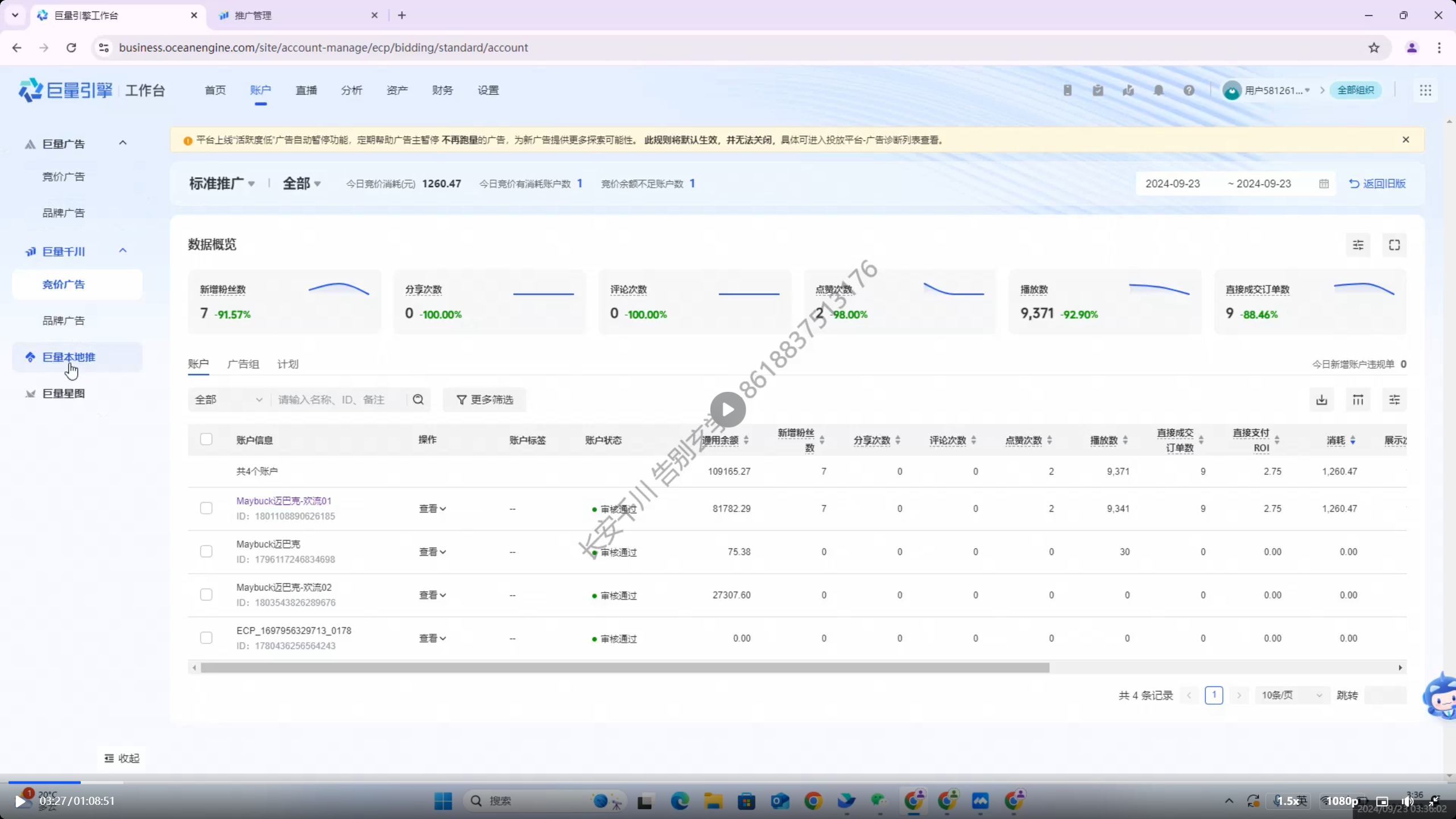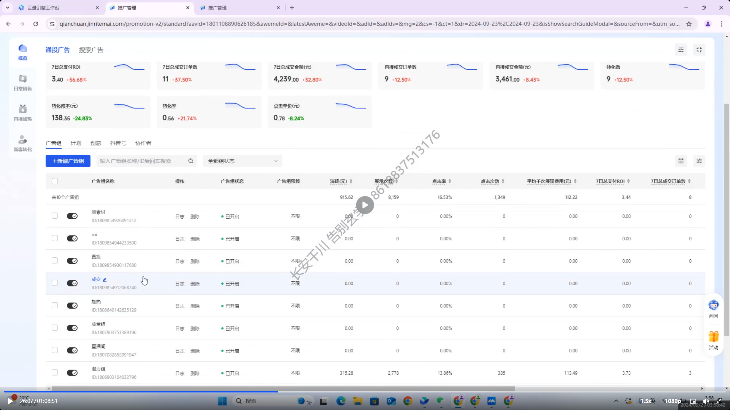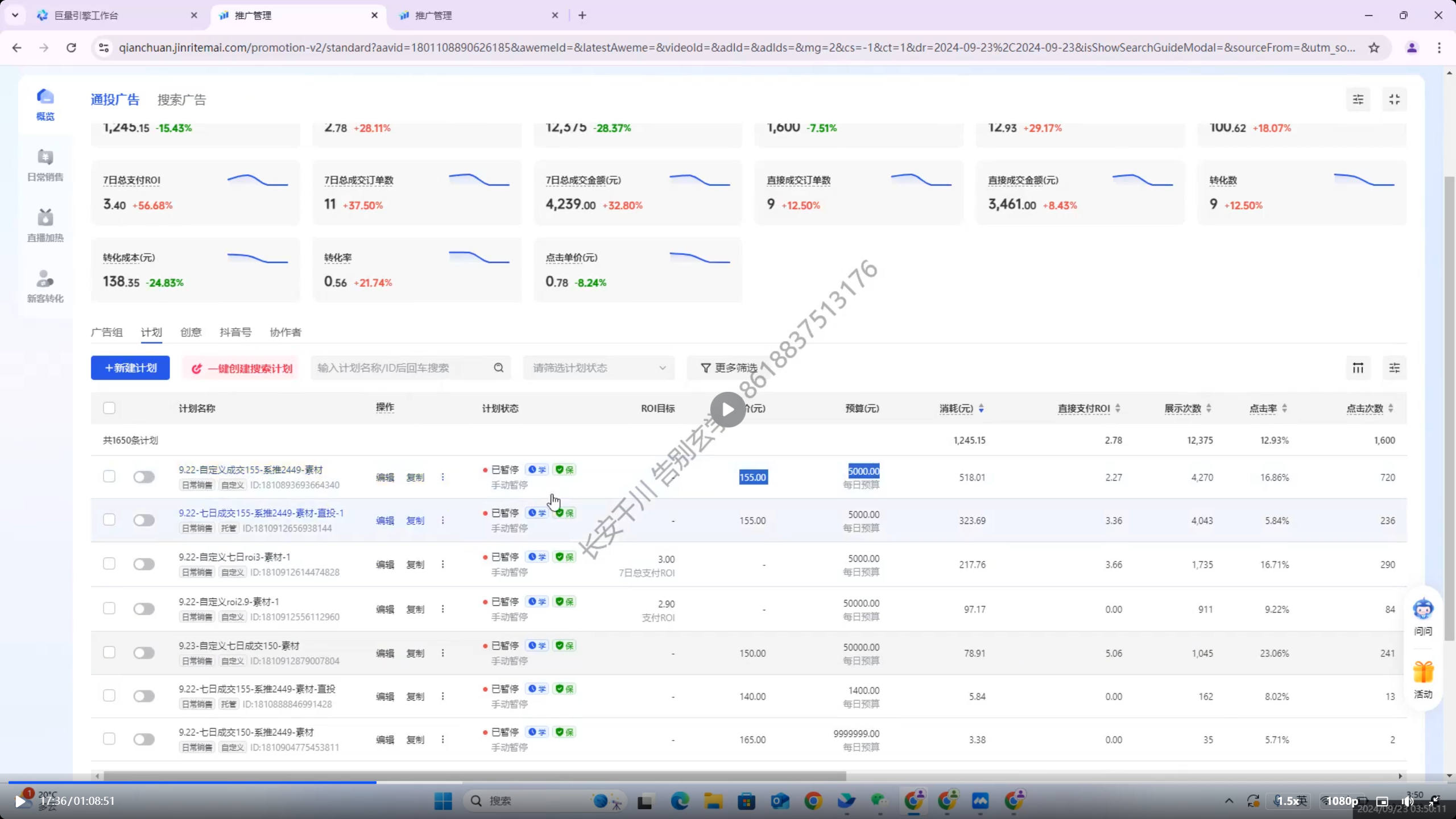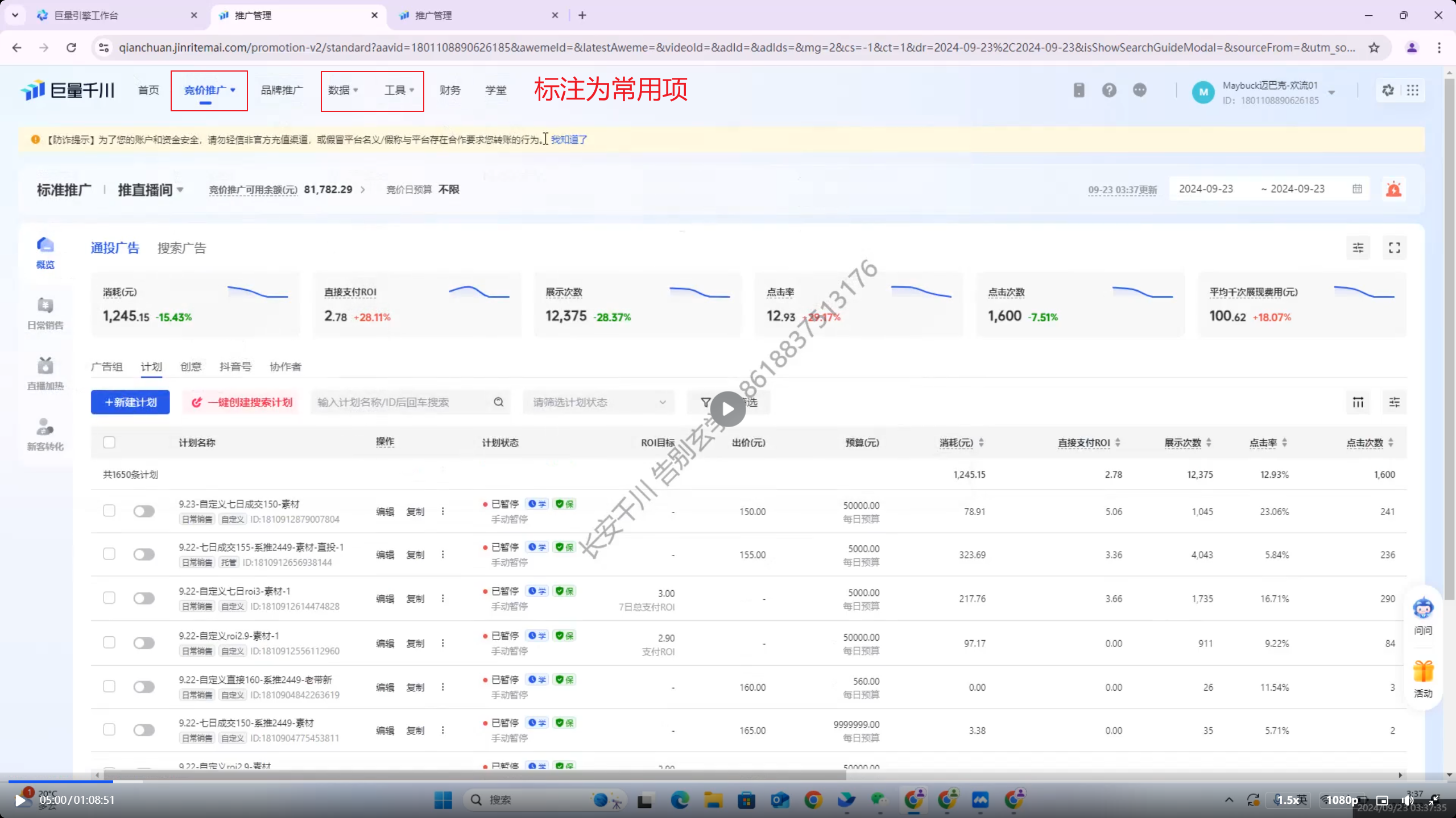 全域推广,无论推直播间或推商品,都只能建一条计划,其直播大屏在计划详情页内查看