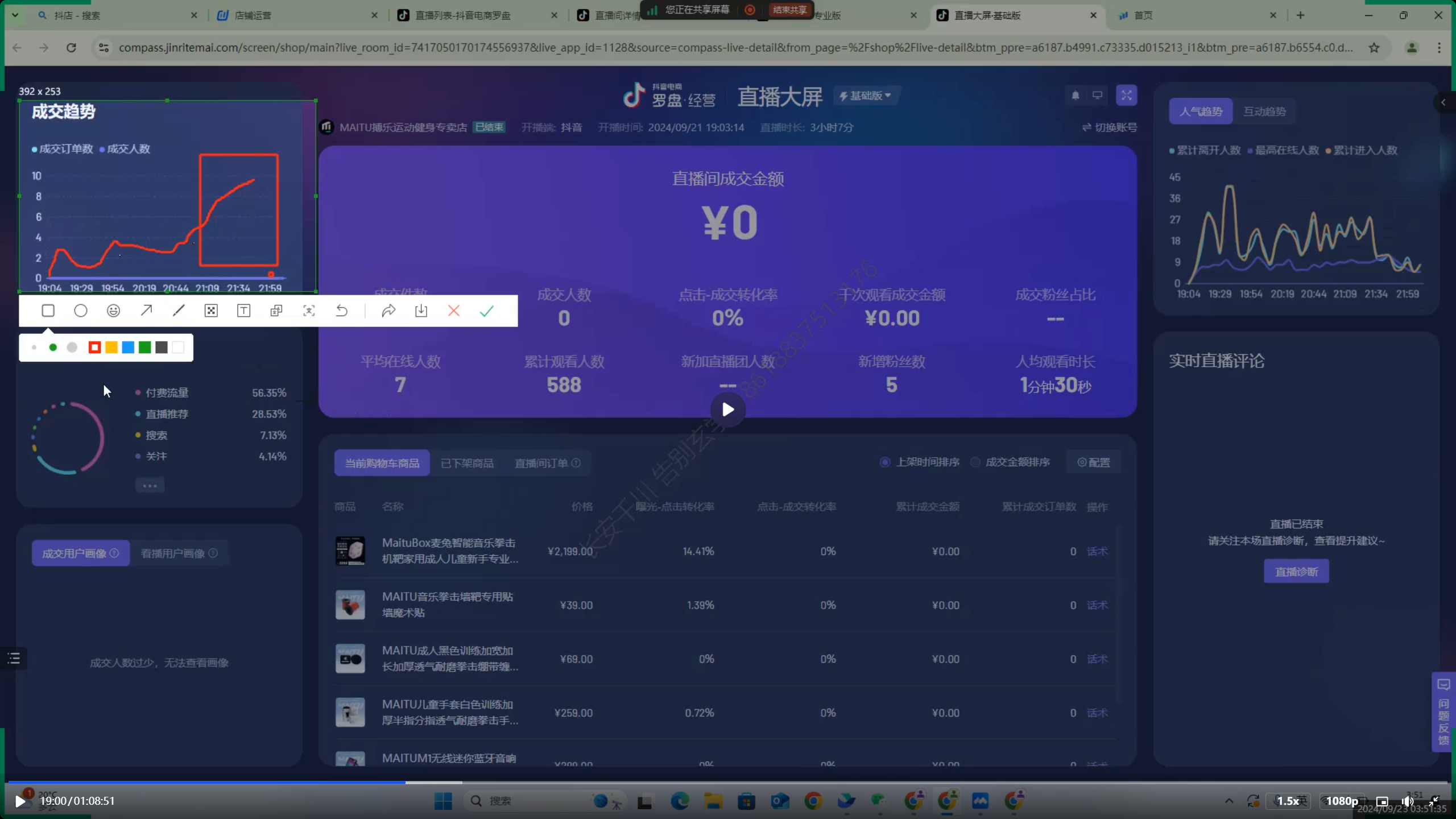 如下图在画框的阶段(成交趋势上来的时候)去建计划是很容易被消耗的,计划遵循 CPM 或 ECPM(ECPM 越高,用户刷到你直播间概率越高)