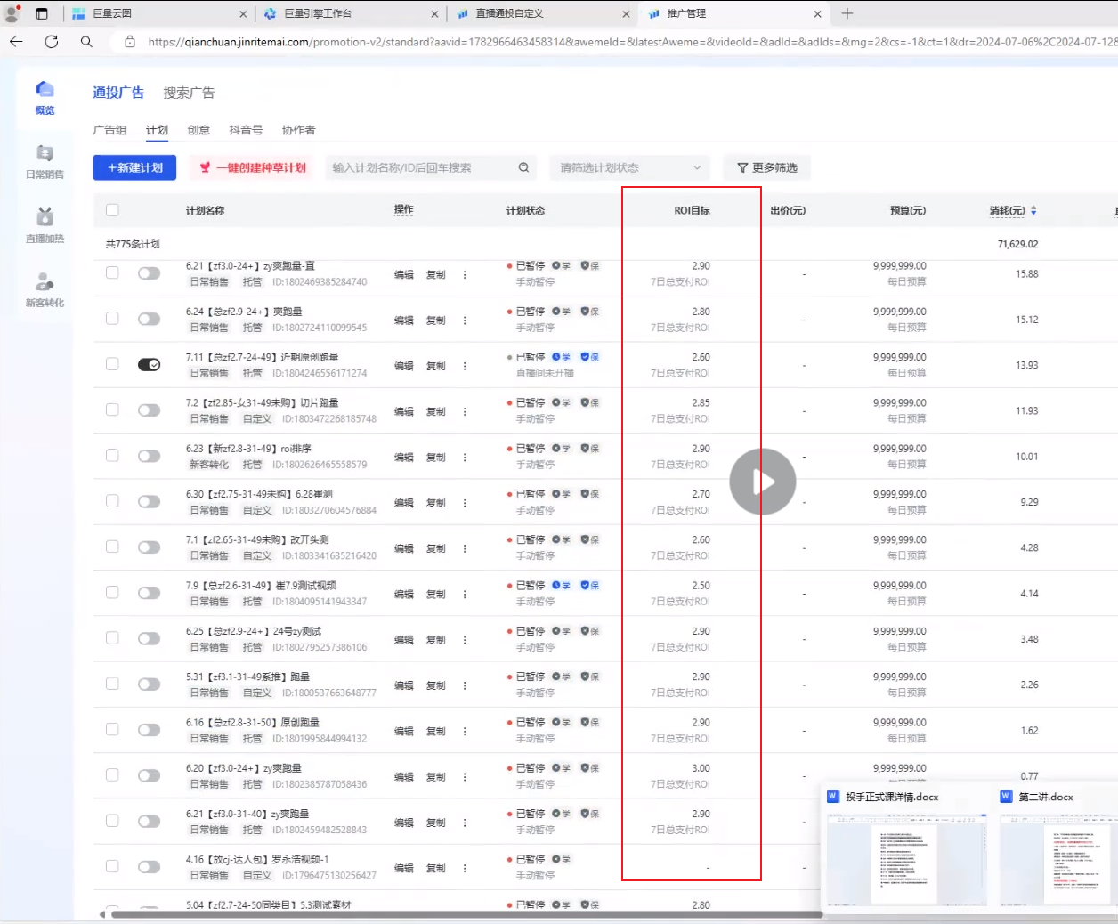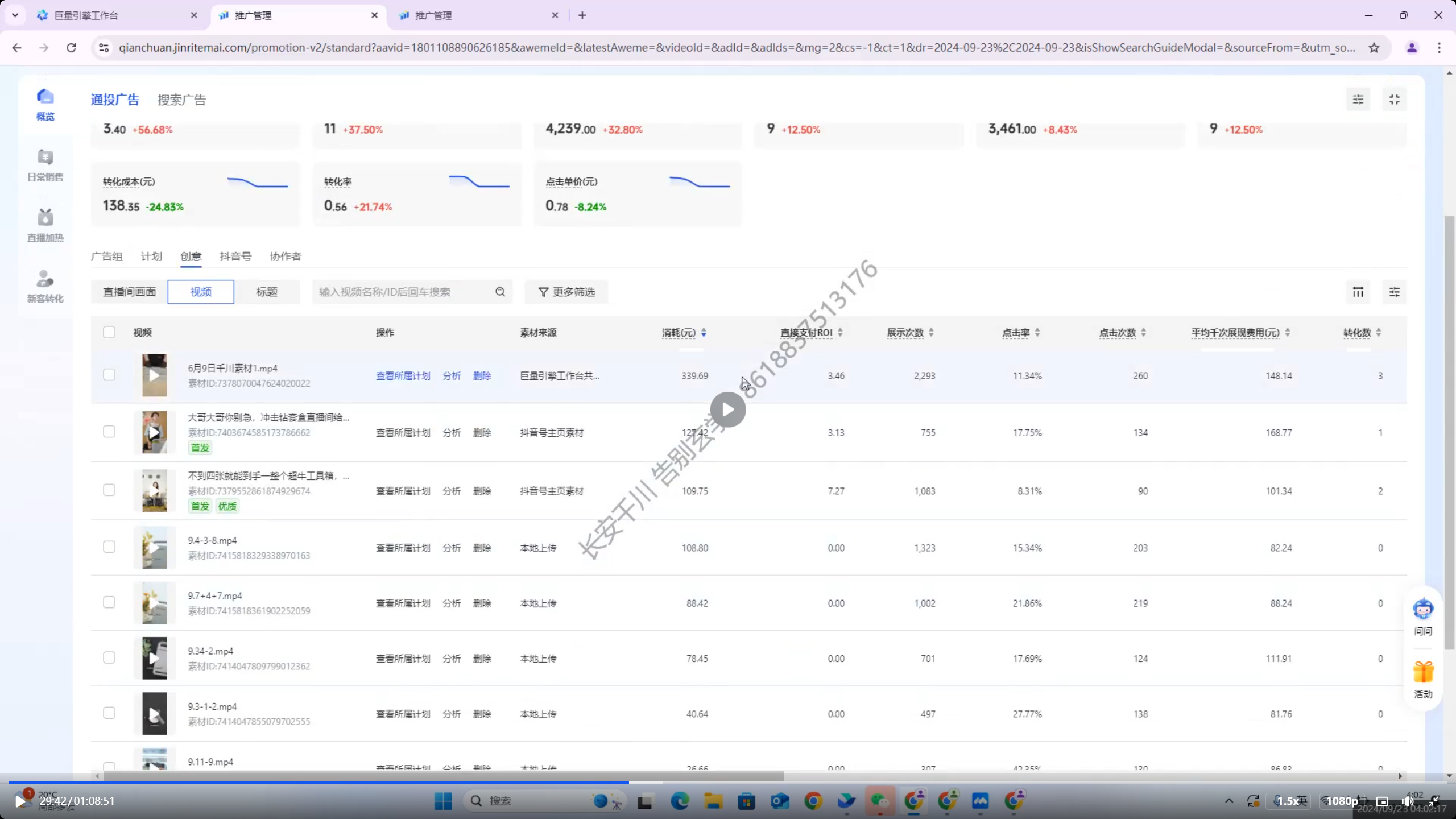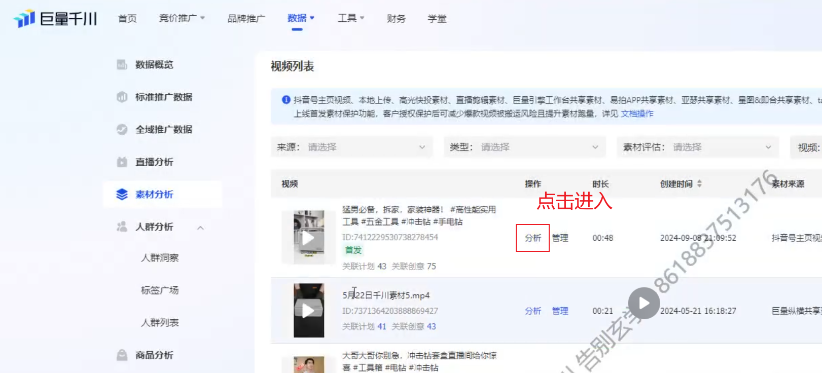 这里的视频也叫素材,可以查看当天消耗最高的素材,然后把这个素材单独去拉或者建计划