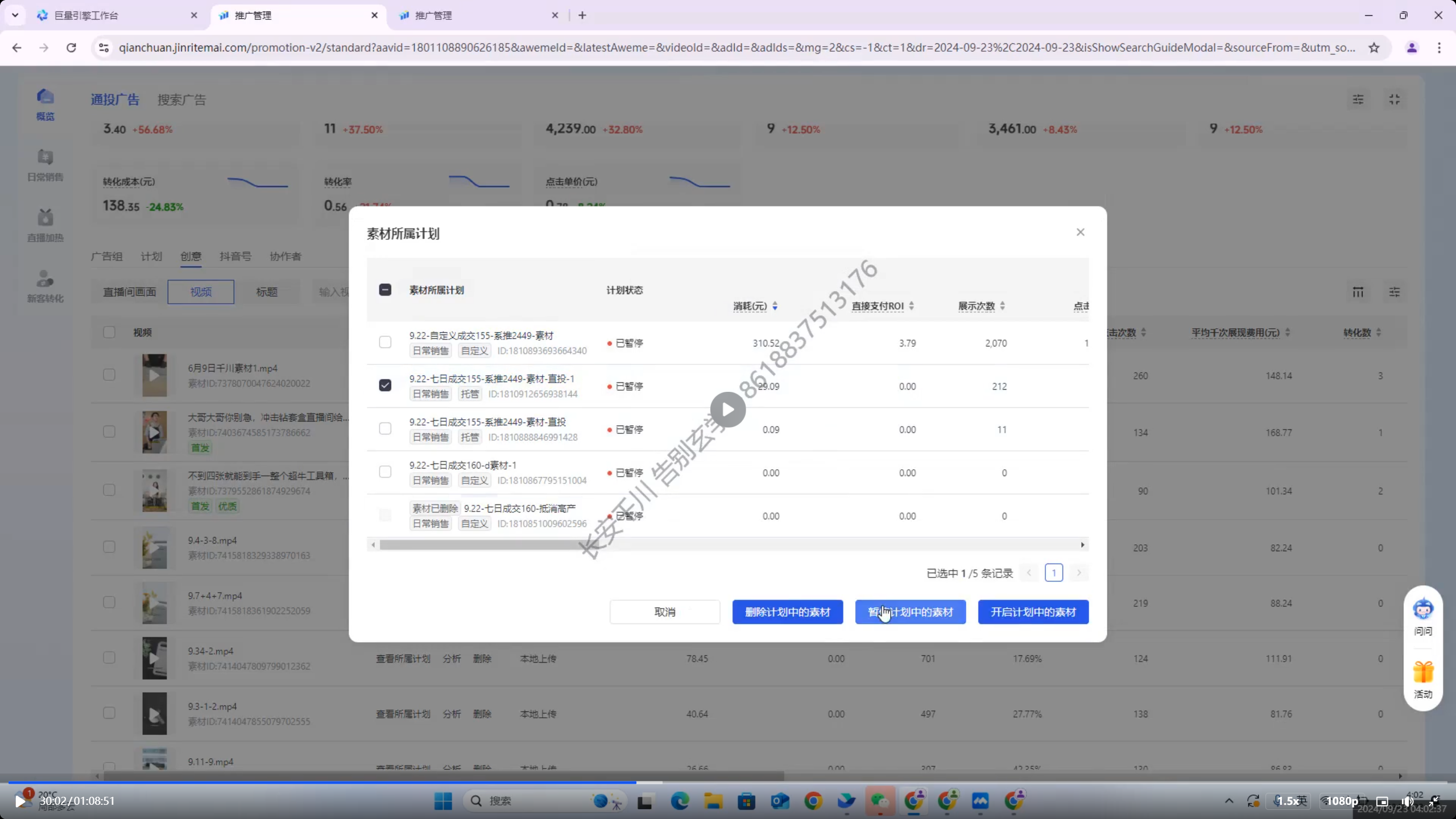 程序化的计划是暂停不了素材的,只能删除素材;自定义计划可以暂停/删除素材