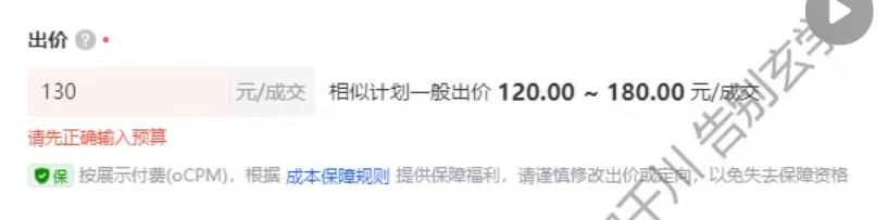 举例:出价 30,转化数 6,转化成本 45(大于 )且不超过两次修改,条件均满足则平台给予赔付
