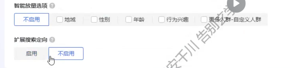 放量投放,由系统自动出价,一般日预算可设置为 300 or 500 or 1000(元)