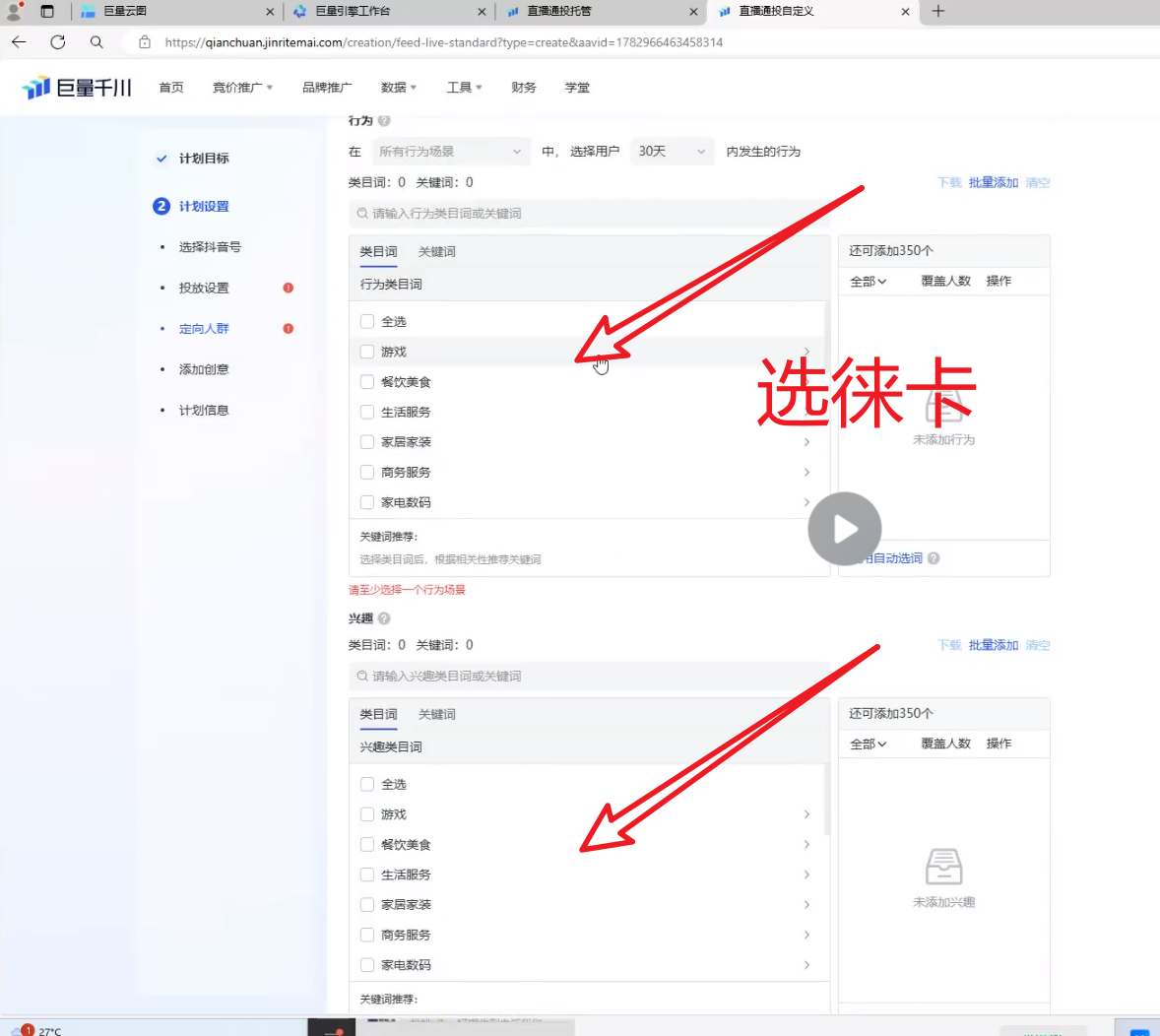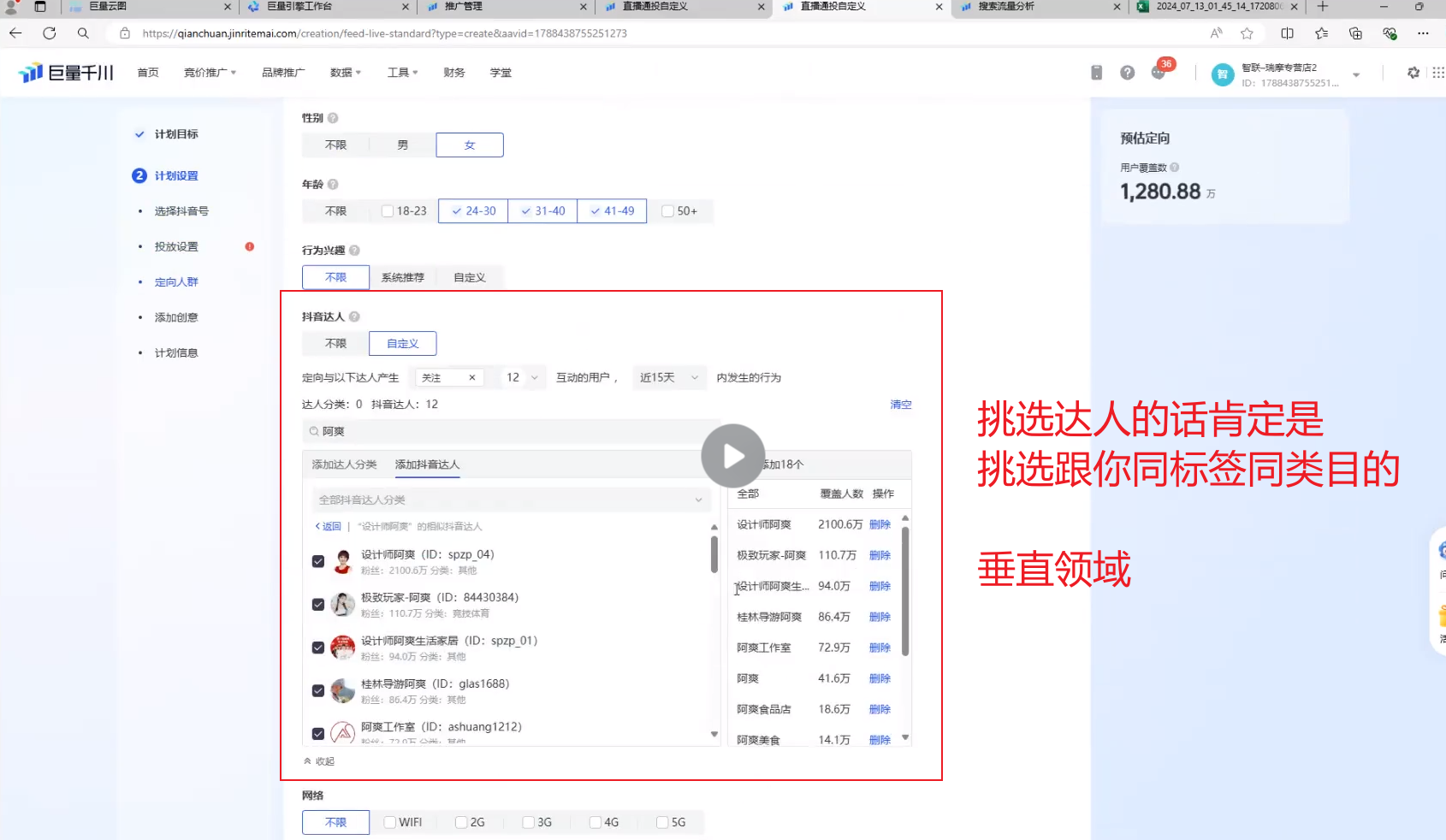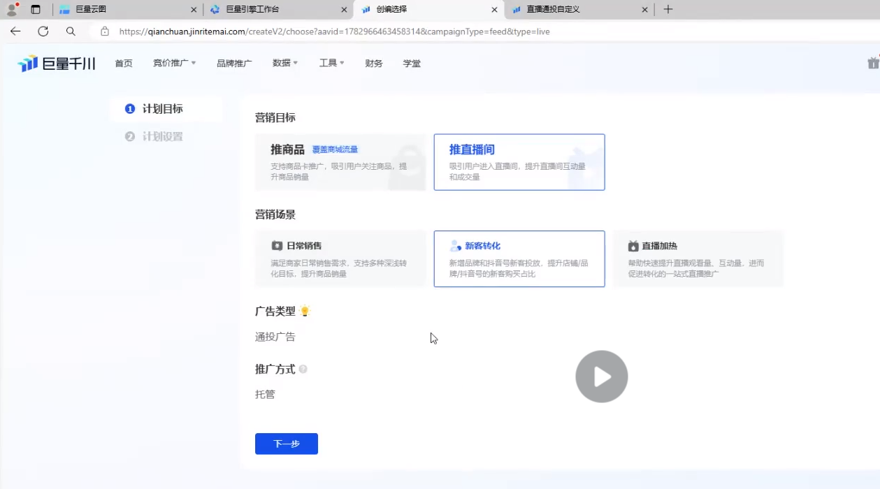 建计划过程中注意选择正确的开播抖音号,这是投手的大忌