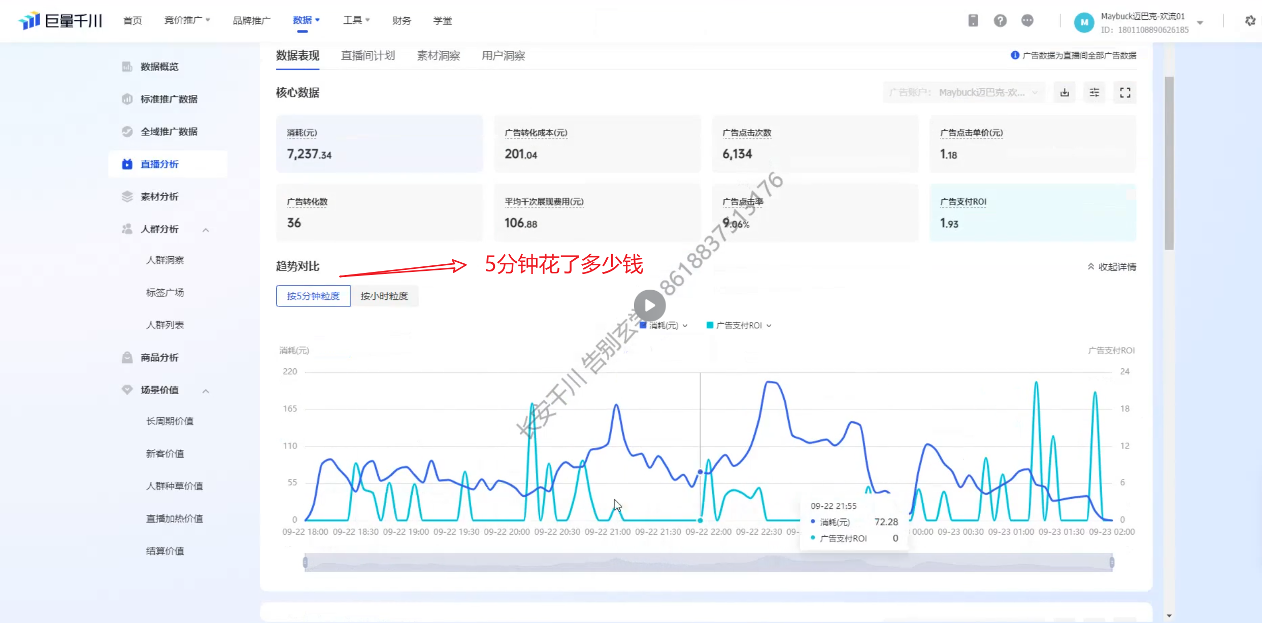 通投广告是最常用的,体量大;搜索广告一般为精准用户(对产品有需求,那么转化率就看主播能力了),所以 ROI 较高。