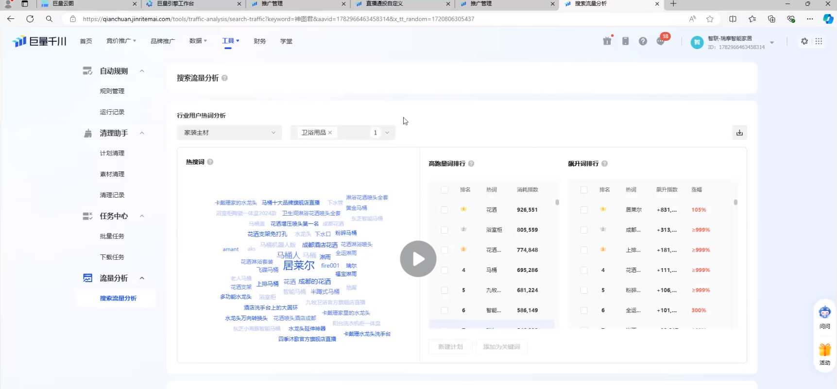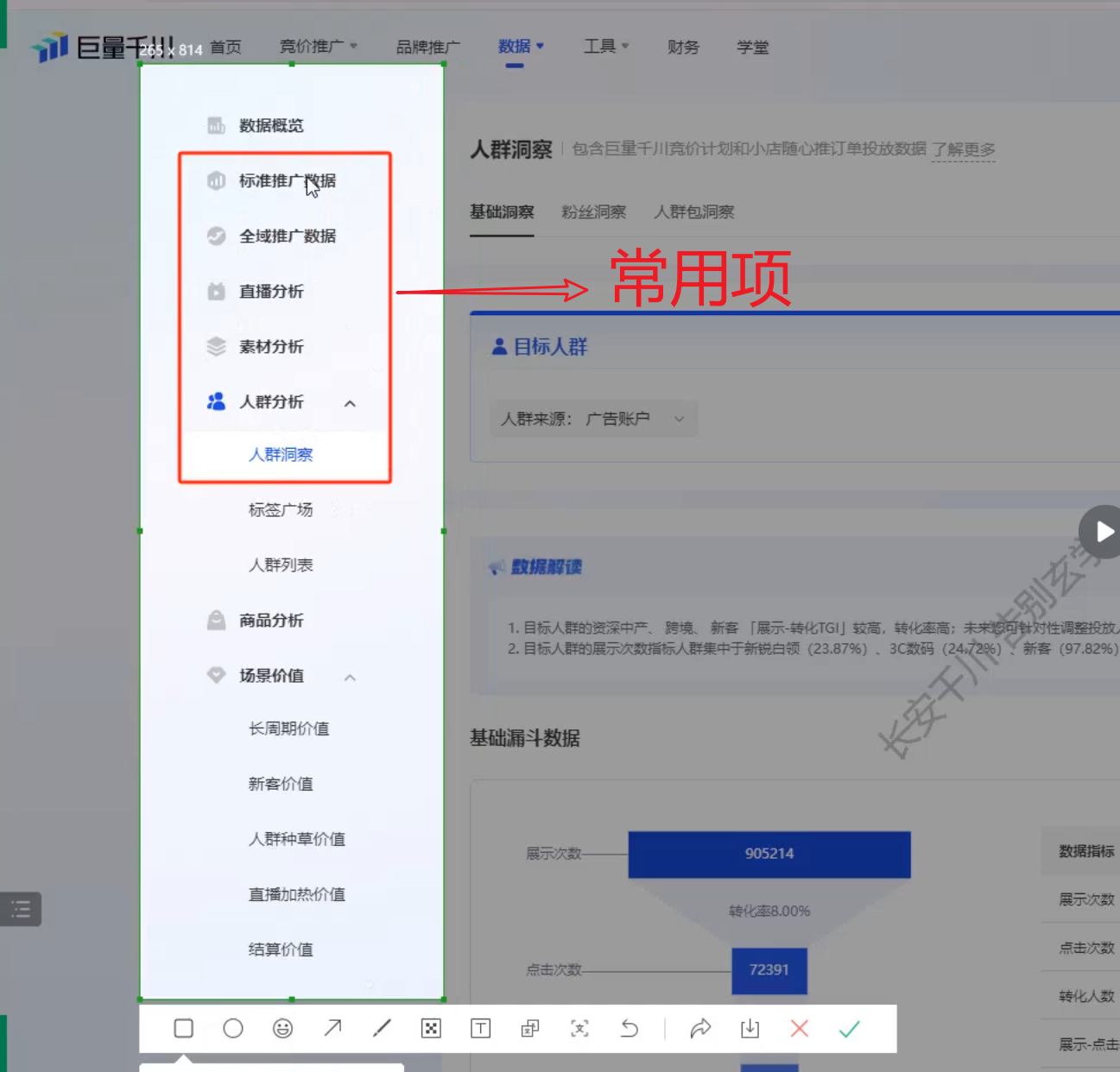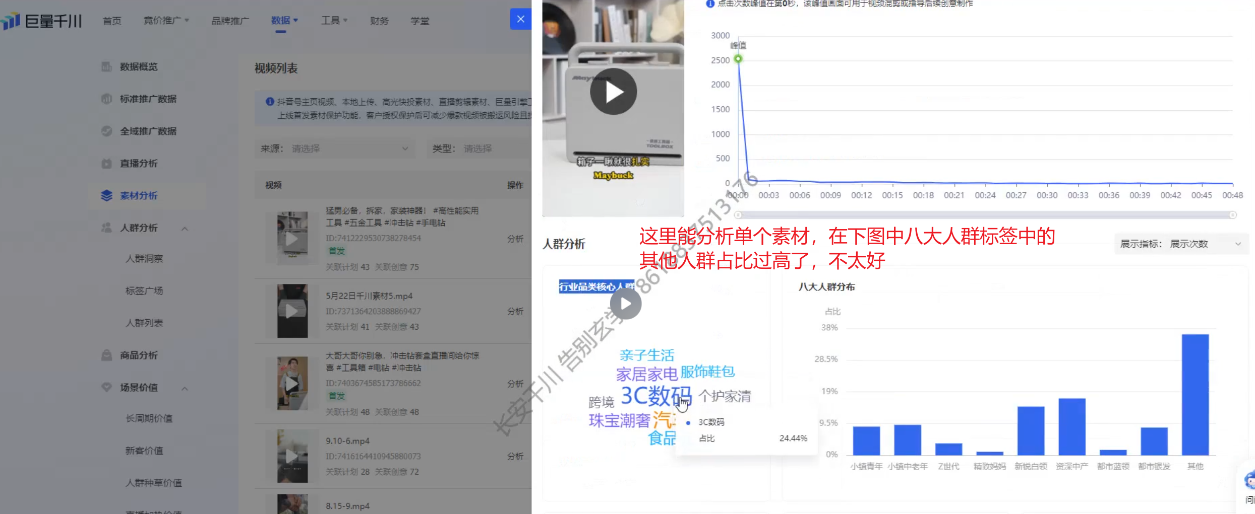 云图的作用是用来搭人群包和内容素材分析,比千川 dmp 更好用
