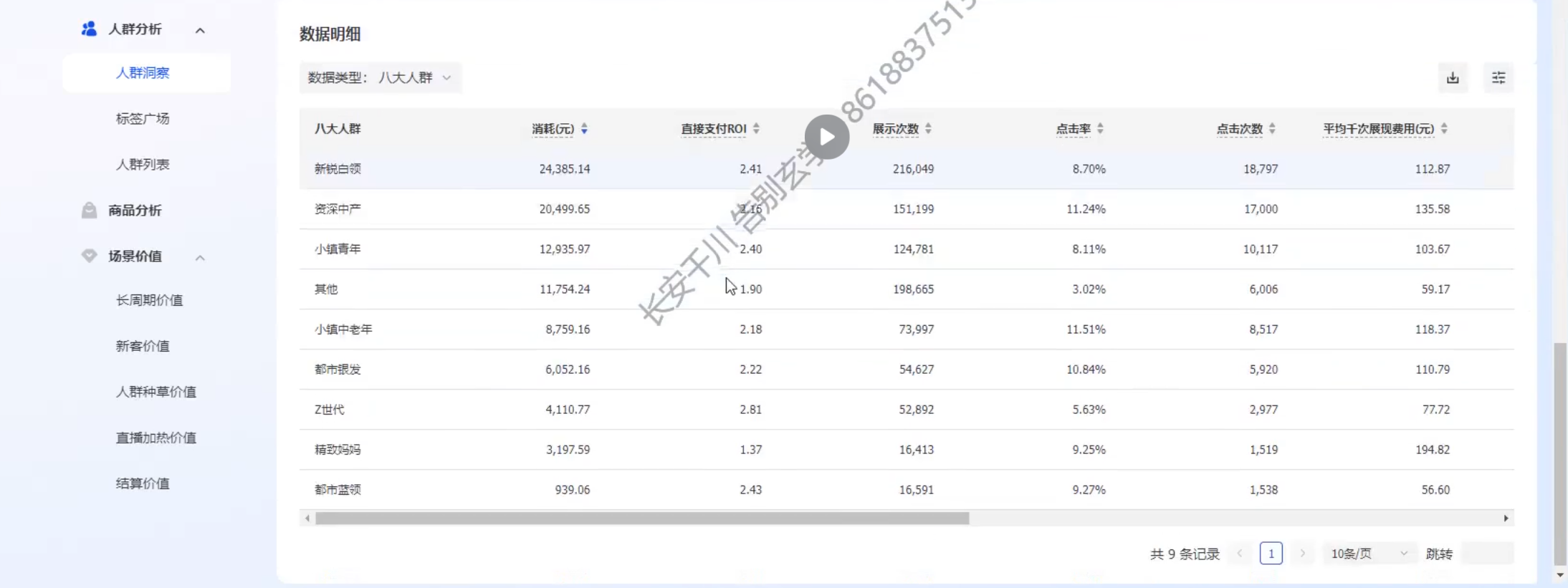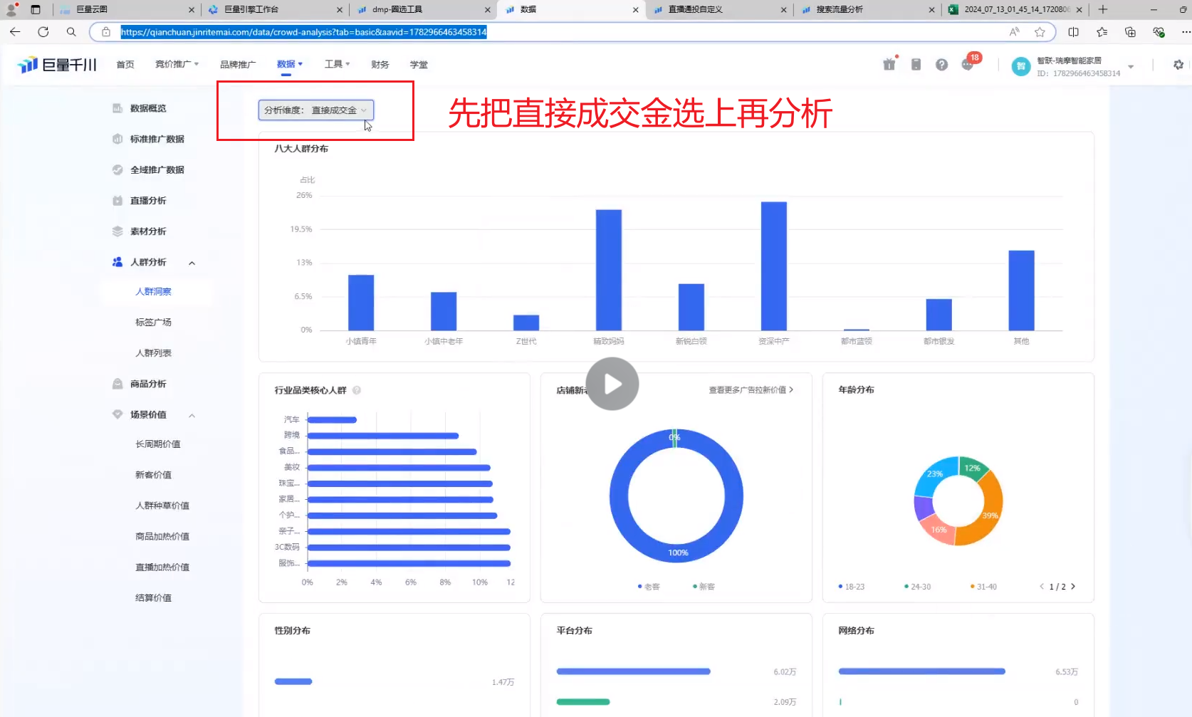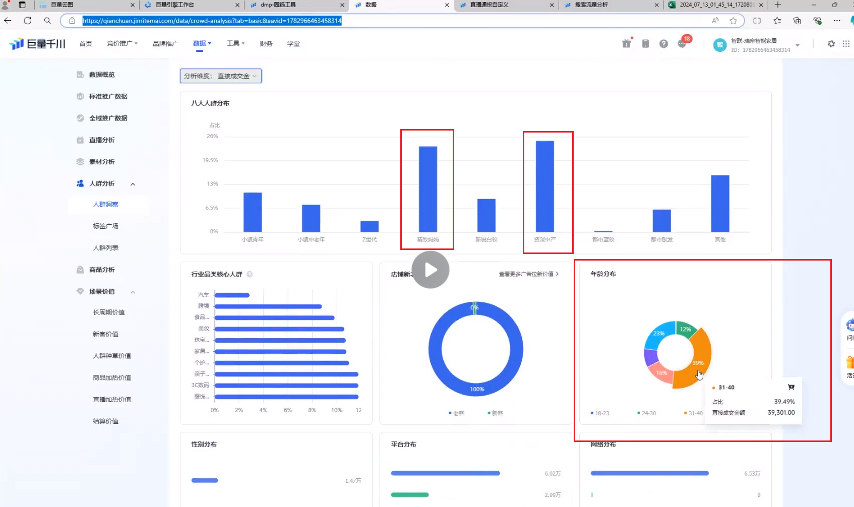 看账户的人群模型(看主力消费人群是哪些),前往【人群分析】-【人群洞察】
