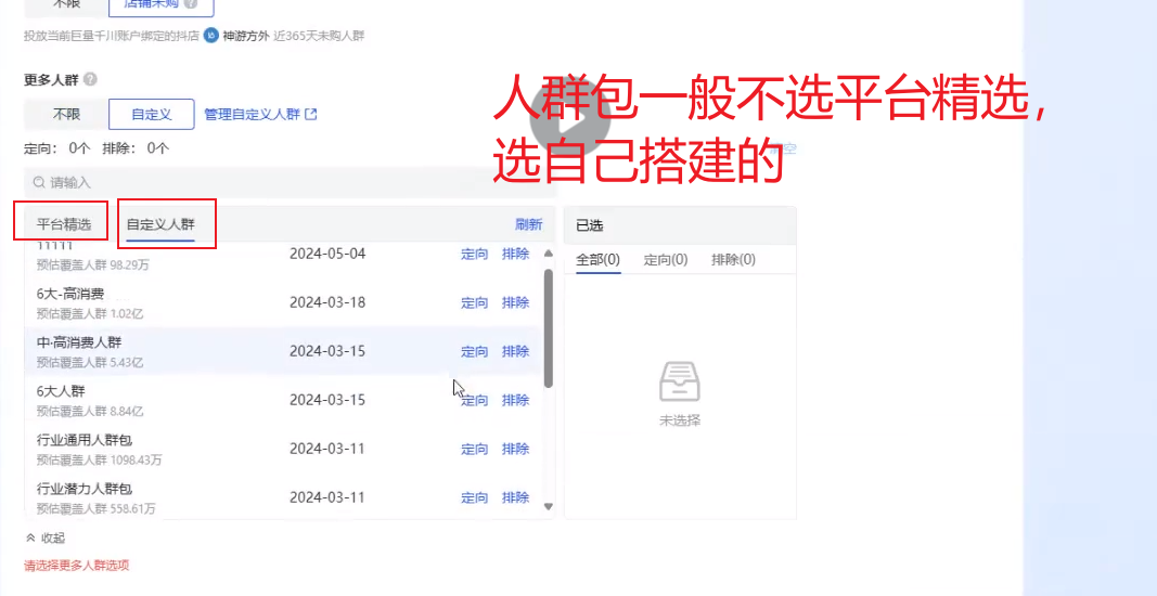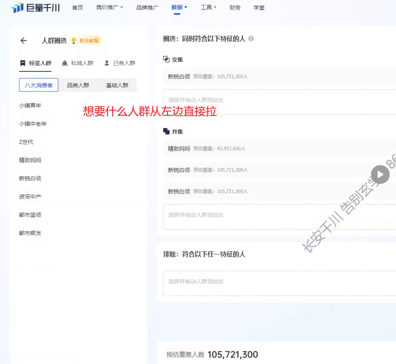 进入【数据】-【竞价数据】-【人群分析】-【人群列表】,点击圈选人群(里面的八大消费者需要会背诵,最好滚瓜烂熟)