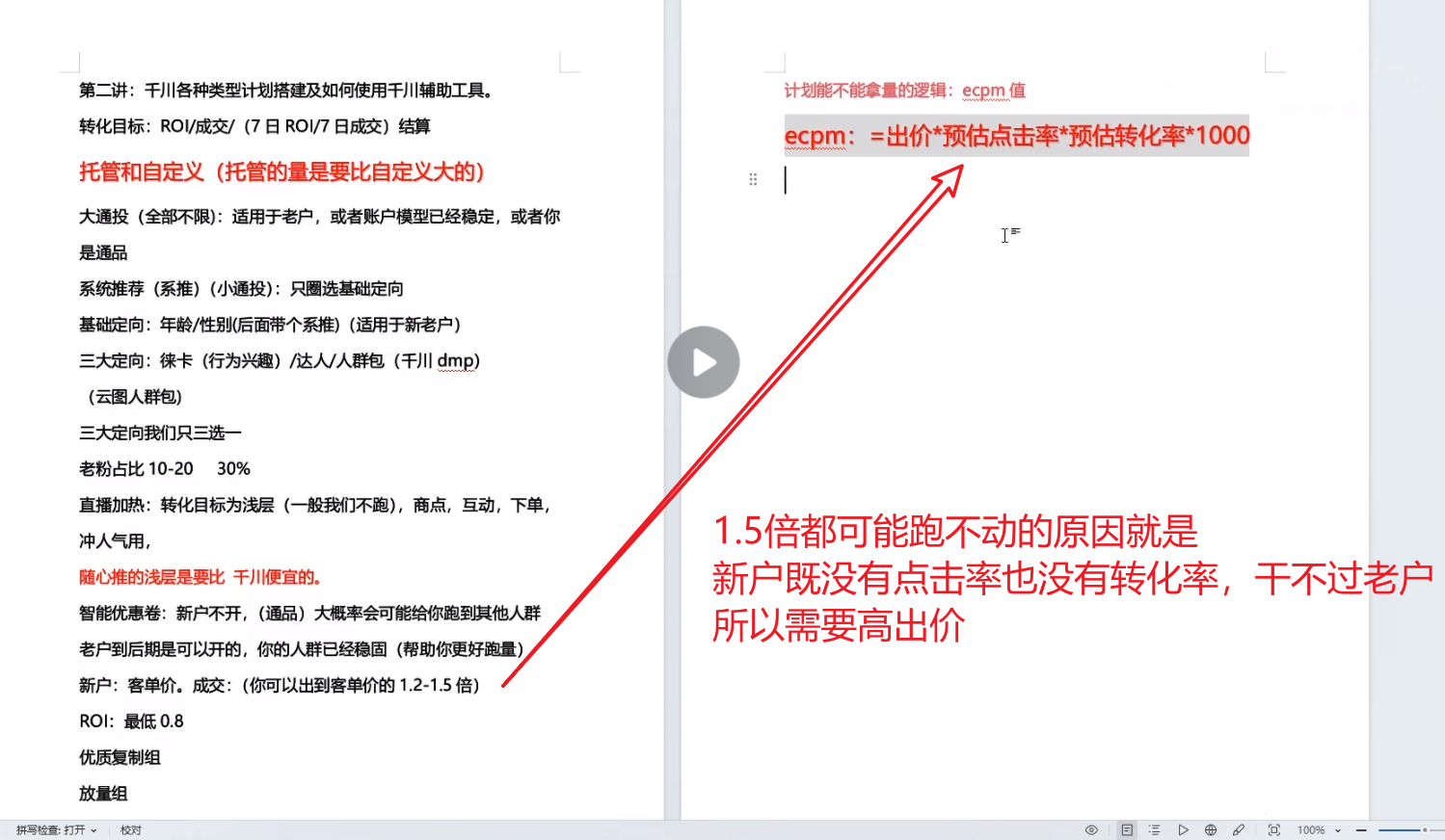 关于出价,计划能不能拿量的逻辑:ecpm 值
