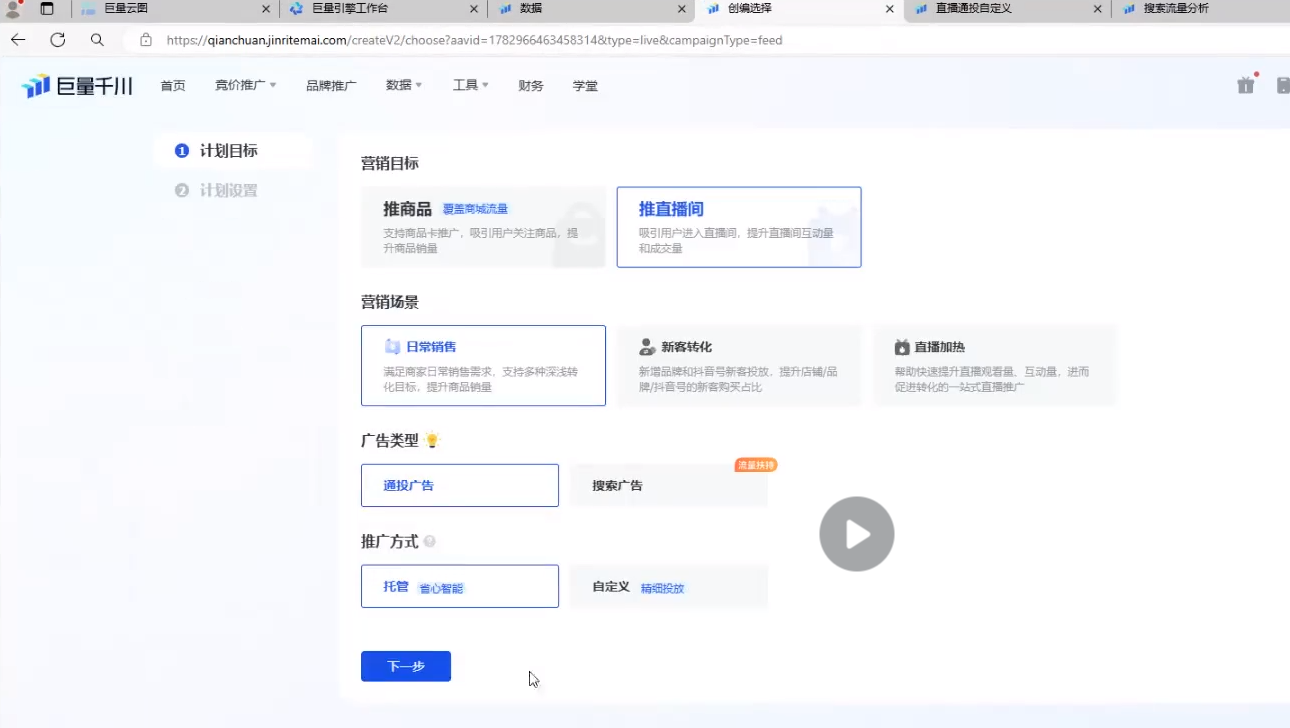 计划的推广方式有两种:托管和自定义,23 年以前分别叫稳投计划(包含极速推和稳投)和专业计划