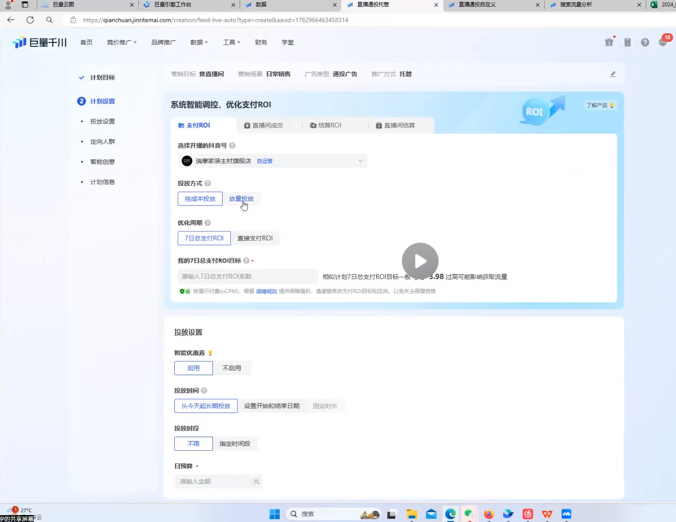 托管跑控本无法选固定时长,跑放量可以选,但跑放量一般还是选自定义,托管的放量目前不太好用,不过还是根据自己的账号情况选择