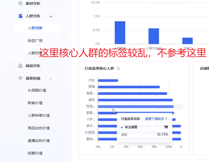 巨量算数还可以查看类目的人群画像,但看不了八大人群,八大人群只能去第三方软件看