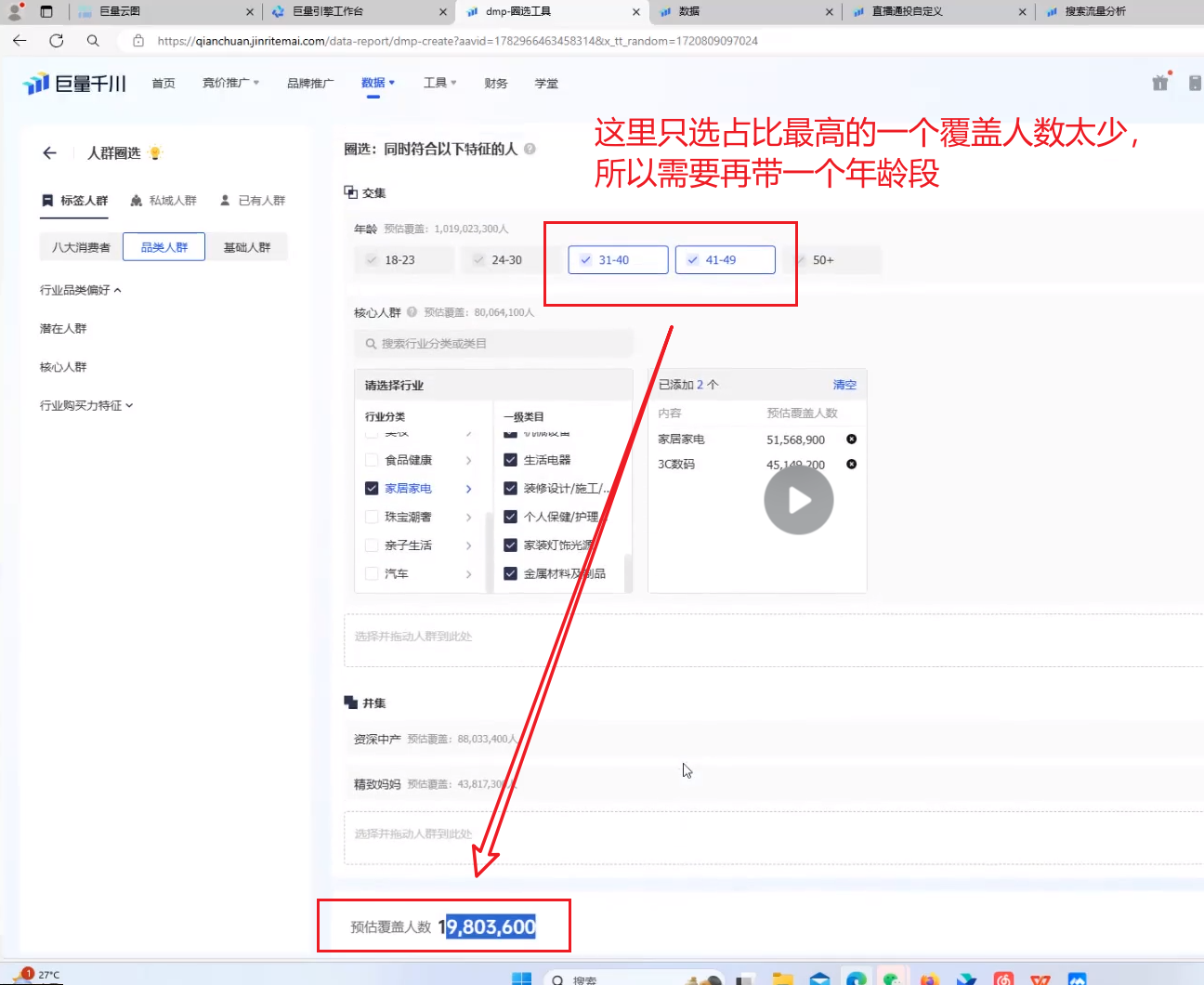 人群包 dmp 圈选,除了分析人群洞察,还可以参考同行(第六讲会讲解如何参考)
